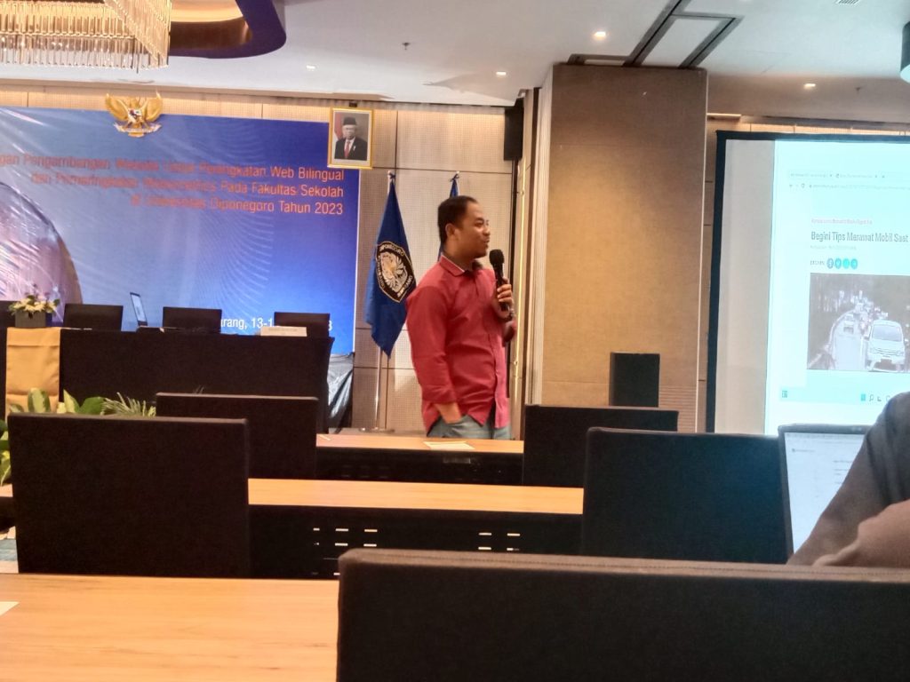 Semarang, 13 april 2023 Universitas Diponegoro mengadakan pendampingan Teknik Penulisan Informasi dalam Website, sebagai narasumber Alkomari, S.Sos, M.I.Kom (pemimpin redaksi pojoksemarang.com). dalam paparannya “kerangka berita meliputi Judul, Lead/Teras, Body/tubuh, sesuai isi berita” tanpa mengabaikan 5w 1h. Acara dibuka oleh Wakil Rektor 3, Prof. Dr.rer.nat. Heru Susanto, S.T., M.M., M.T. dalam sambutannya untuk meningkatkan webometrics […]