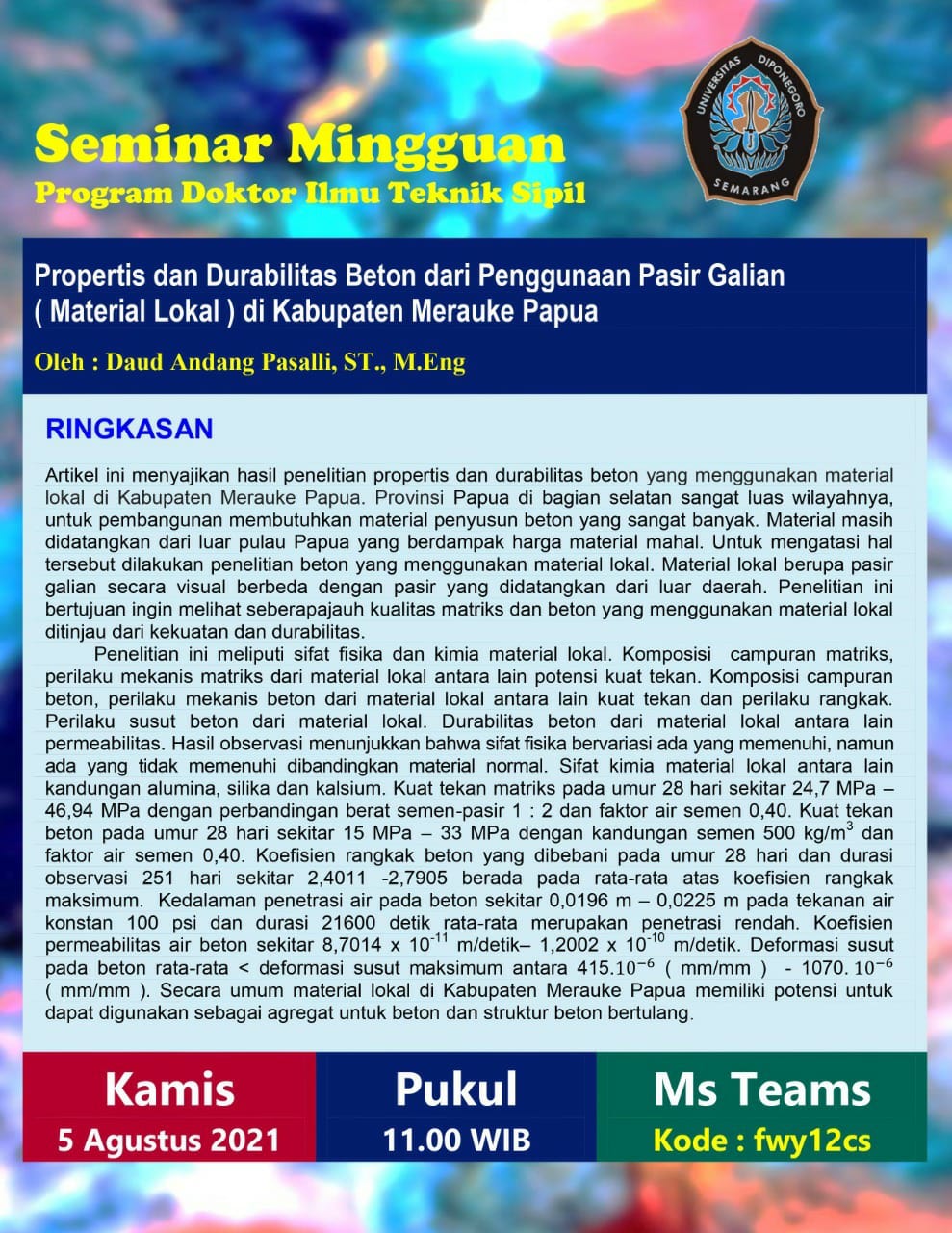Propertis dan Durabilitas Beton dari Penggunaan Pasir Galian (Material Lokal) di Kabupaten Merauke Papua |