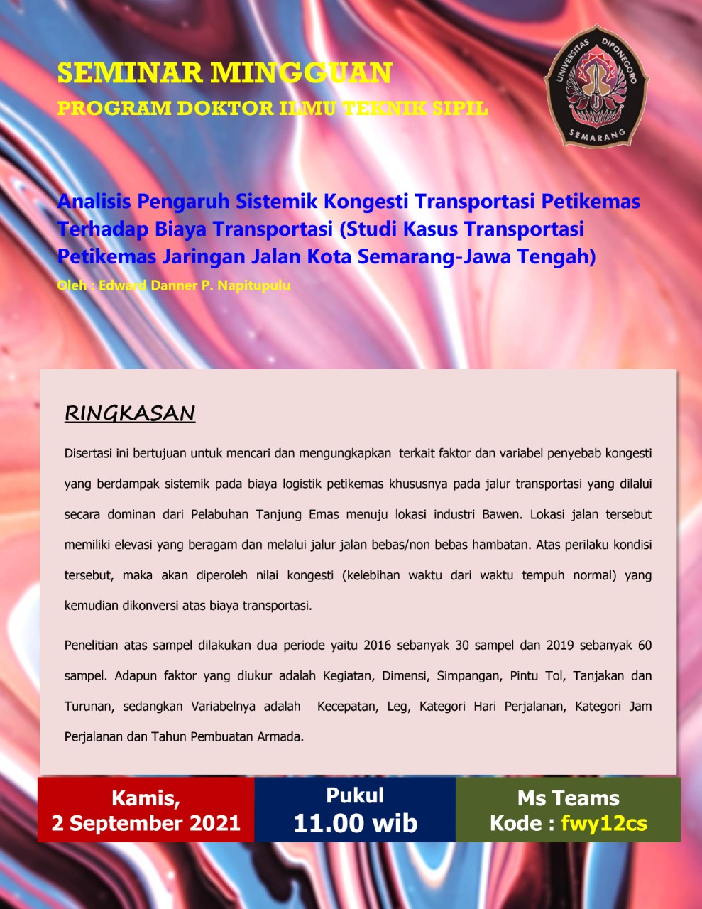 Analisis Pengaruh Sistematik Kongesti Transportasi Petikemas Terhadap Biaya Transportasi (Studi Kasus Transportasi Peti Kemas Jaringan Jalan Kota Sermarang-Jawa Tengah |