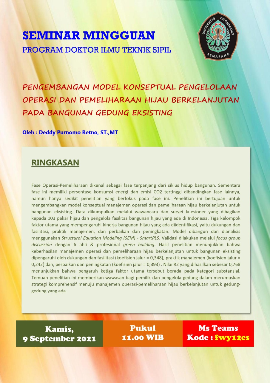 Pengembangan Model Konseptual Pengelolaan Operasi dan Pemeliharaan Hijau Berkelanjutan Pada Bangunan Gedung Eksisting |