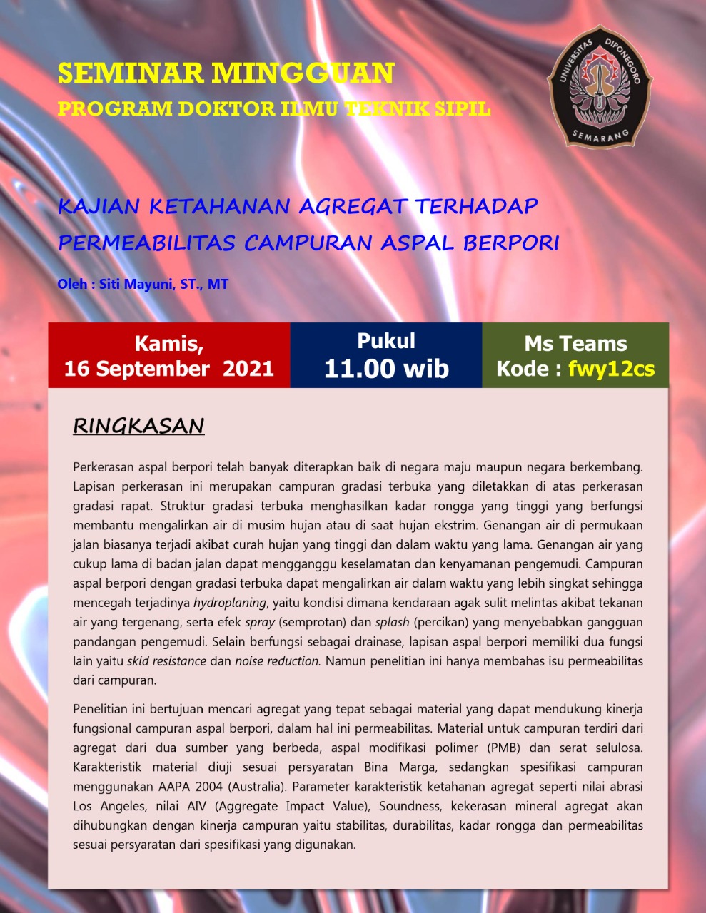 Kajian Ketahanan Agregat Terhadap Permeabilitas Campuran Aspal Berpori |