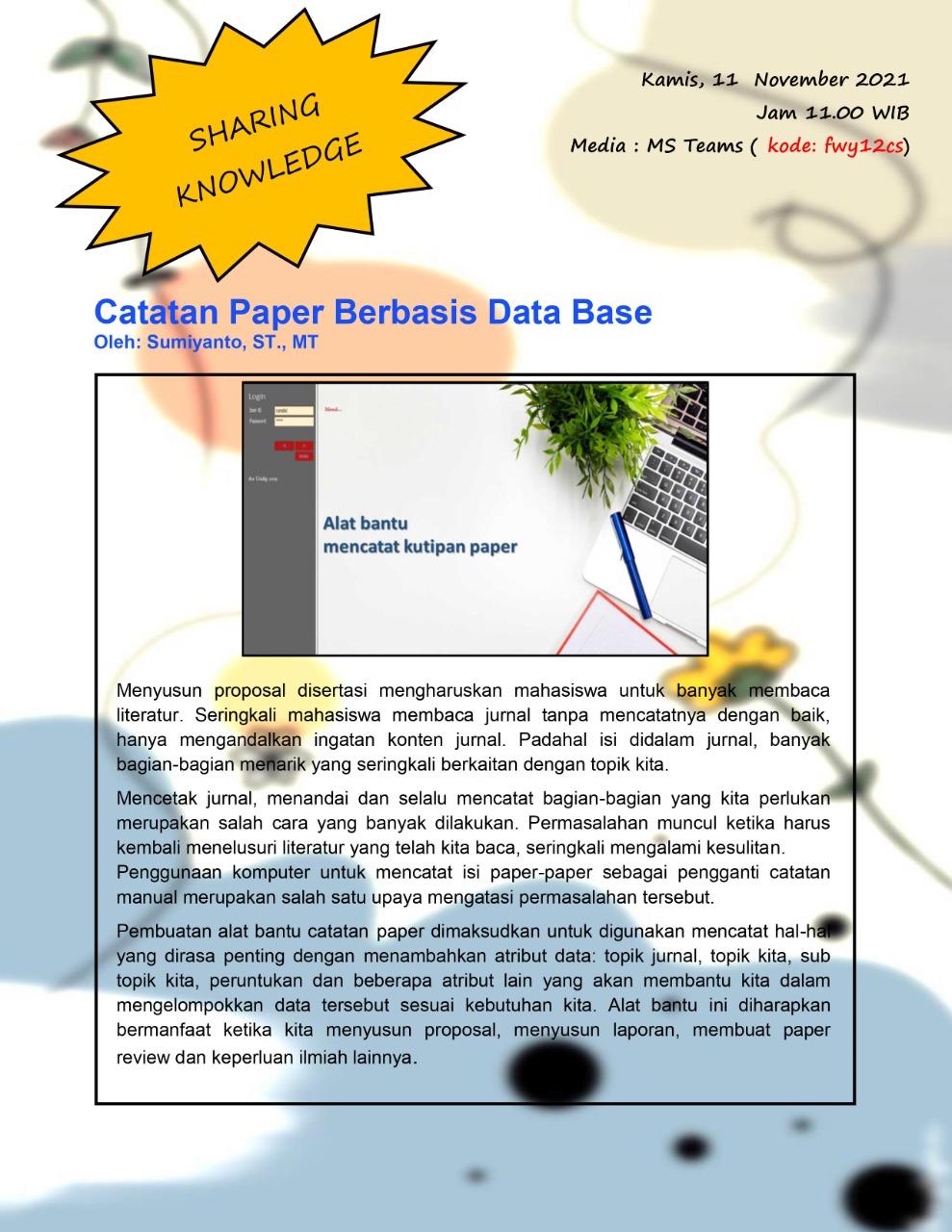 Sahring Knowledge ” Catatan Paper Berbasis Data Base” |