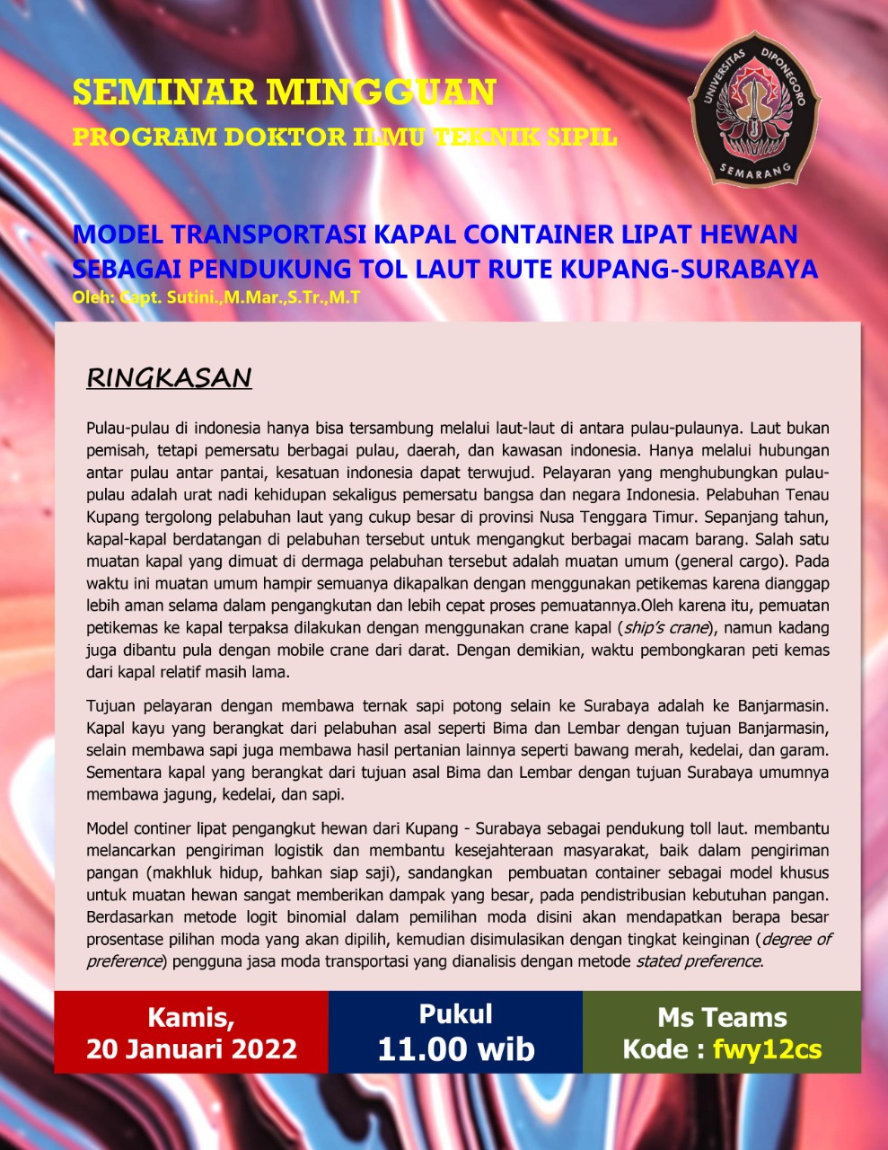 Model Transportasi Kapal Container Lipat Hewan Sebagai Pendukung Tol Laut Rute Kupang-Surabaya |