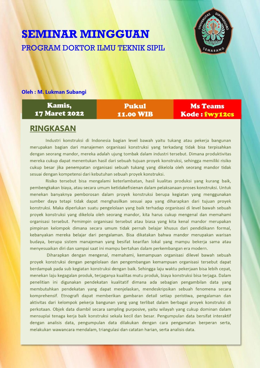 Kajian Manajemen Risiko Kebencanaan Pada Kontrak Konstruksi |