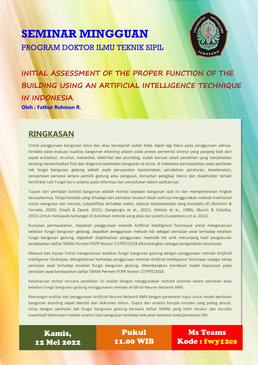 Initial Assessment Of The Proper Function Of The Building Using An Artificial Intelligence Technique In Indonesia |